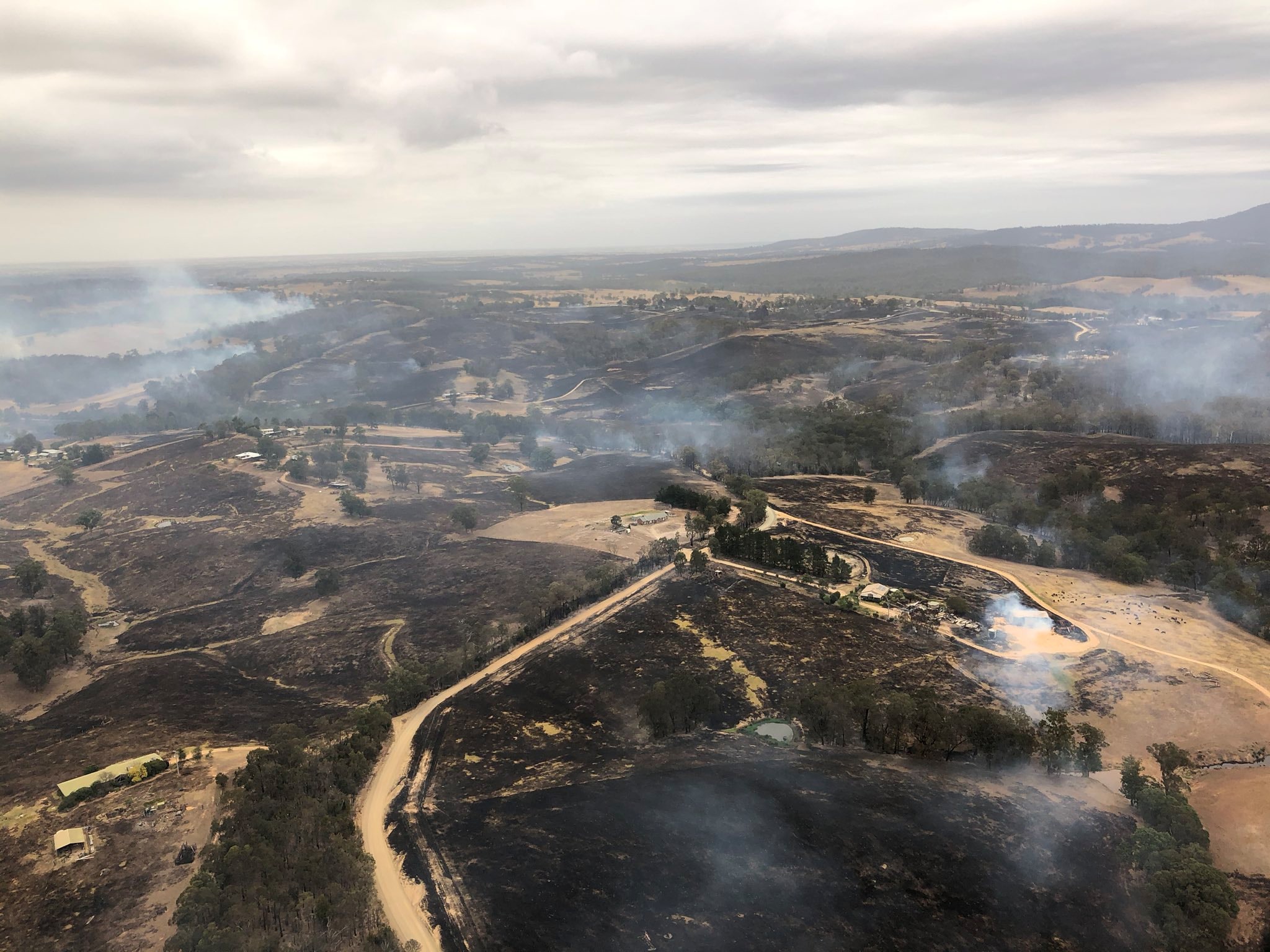 An aerial view shows the aftermath of bushfires in Bairnsdale, Victoria, Australia, December 30, 2019 in this picture obtained from social media. (Photo: Glen Morey via Reuters)