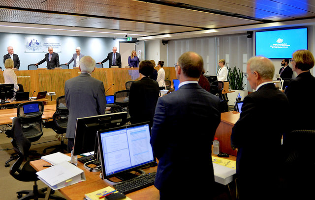 Officials involved with the Royal Commission into Institutional Responses to Child Sexual Abuse stand as the public hearing into the Catholic Church authorities, begins another session in Sydney, Australia, February 6, 2017. (Photo: Jeremy Piper/Handout via Reuters)