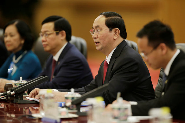 Vietnamese President Tran Dai Quang speaks during the meeting with China’s President Xi Jinping (not pictured). (Photo: Reuters)