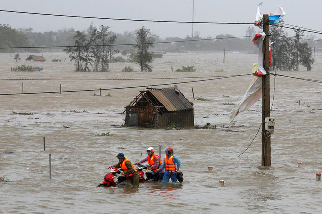 People recover motorbikes from a flooded fields while the Doksuri storm hits in Ha Tinh province, Vietnam September 15, 2017. (Photo: Reuters) At least 54 people died and 39 went missing as destructive floods battered northern and central Vietnam this week, the disaster prevention agency said.