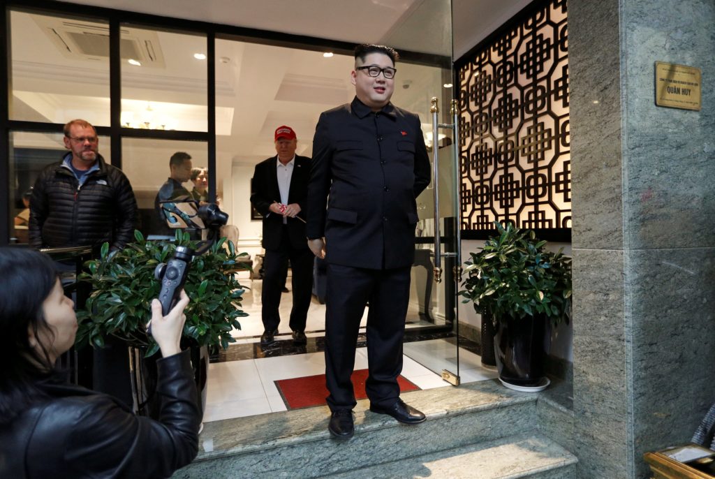 Howard X, an Australian impersonating North Korean leader Kim Jong Un, leaves the La Paix Hotel in front of an impersonator of US President Donald Trump, while escorted by police, in Hanoi, Vietnam February 25, 2019. (Photo: Reuters)