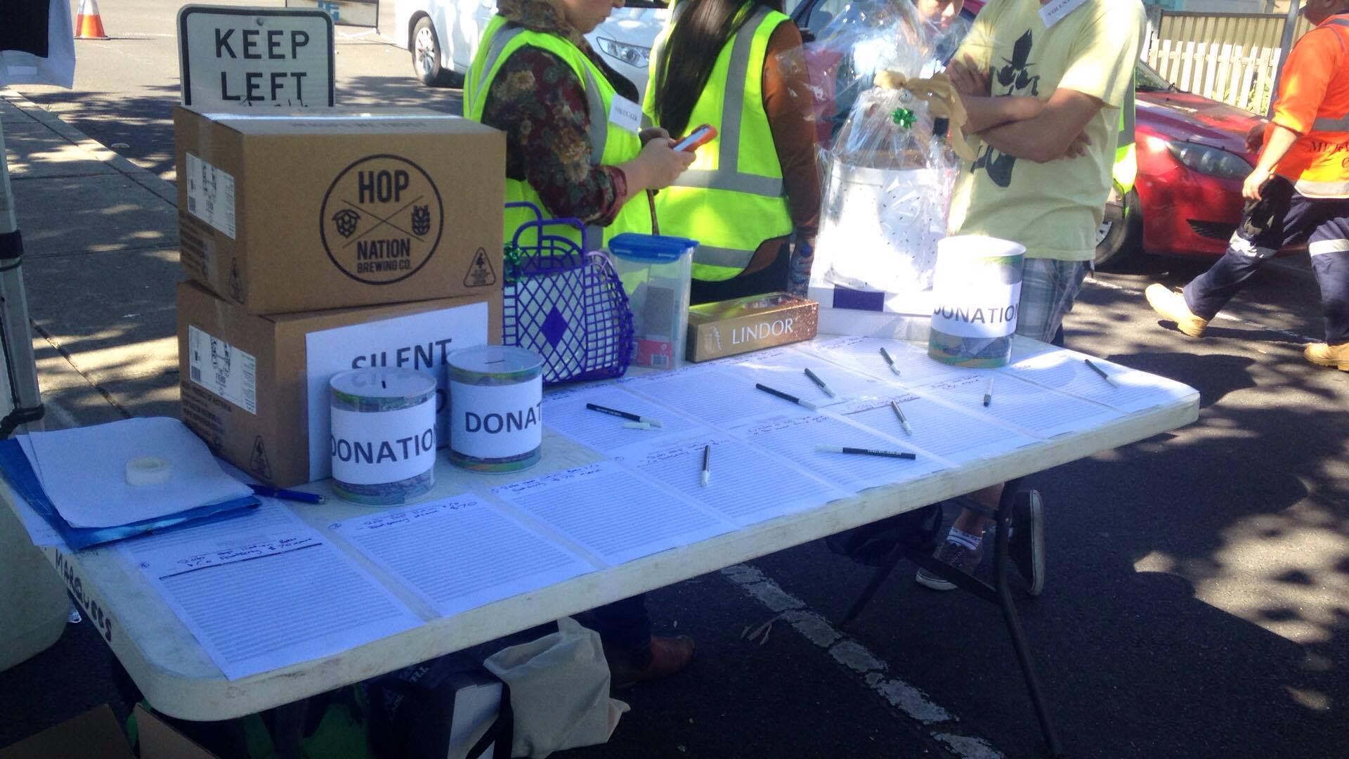A table is set up for people to donate money for Little Saigon traders affected by last Tuesday’s fire. (Photo: Phi-Long Nguyen)