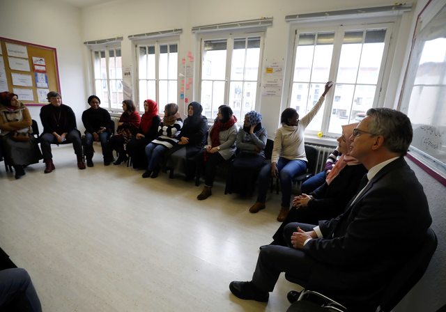 German Interior Minister Thomas de Maiziere (R) visits the Muslim family education centre (Bildungswerk) in Cologne, Germany January 9, 2017. (Photo: Reuters)