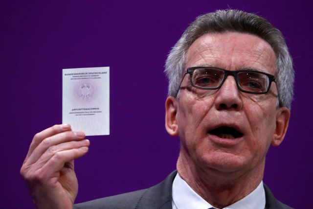 German Interior Minister Thomas de Maiziere shows arrival document for refugees as he speaks during the yearly meeting of Germany’s government workers union Deutscher Beamtenbund (dbb) in Cologne, Germany January 9, 2017. (Photo: Reuters) Germany’s interior and justice ministers, representing the two blocs in Chancellor Angela Merkel’s ruling coalition, have agreed on tougher measures for asylum seekers whose documents are not in order or who are deemed to pose a security threat.