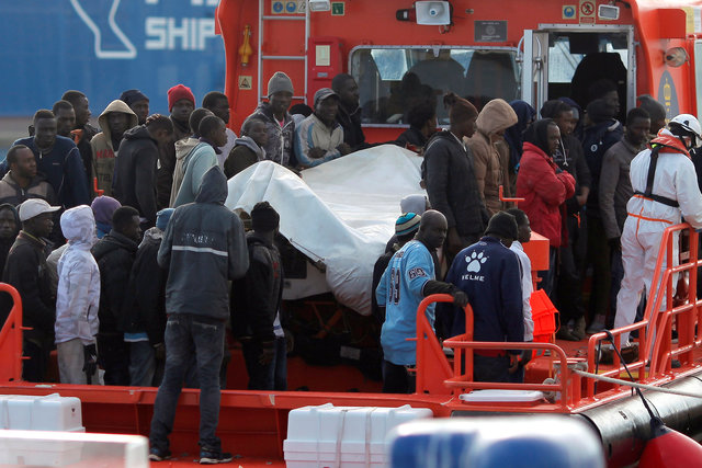 Migrants, who are part of a group intercepted aboard a dinghy off the coast in the Mediterranean sea, stand on a rescue boat upon arriving at a port in Malaga, southern Spain, January 1, 2017. (Photo: Reuters)