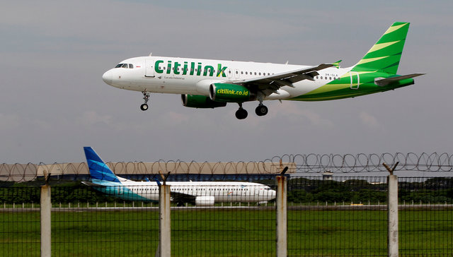 A Citilink Airbus A320 approaches for a landing at Soekarno-Hatta International Airport in Jakarta. (Photo: Reuters/ File Photo)