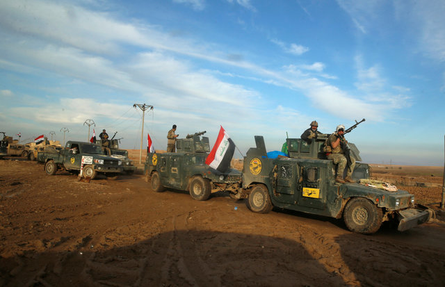 Iraqi security forces ride on military vehicles during clashes with Islamic State militants, north of Mosul, Iraq. (Photo: Reuters)
