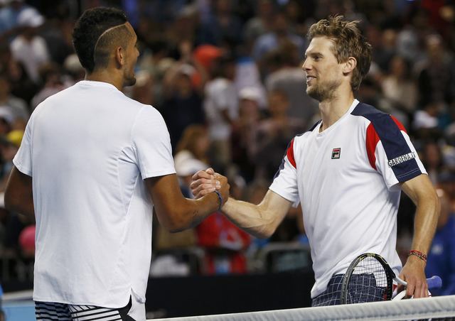 Italy’s Andreas Seppi shakes hands with Nick Kyrgios after winning their Men’s singles second round match. (Photo: Reuters)
