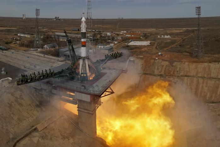 Phi thuyền chở hai ông Jack Fischer và Fyodor Yurchikhin rời khỏi bệ phóng vệ tinh Baikonur của Nga để thực hiện sứ mệnh 4 tháng trên quỹ đạo. Theo kế hoạch, hai người sẽ đến Trạm Không Gian Quốc Tế sau sáu giờ bay.