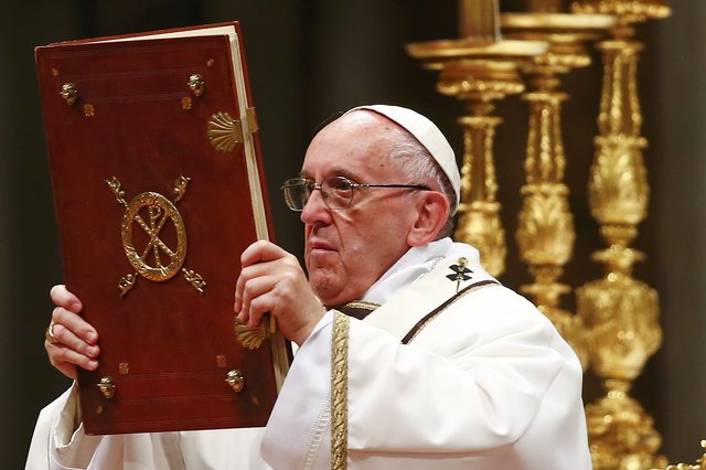 Pope Francis holds the book of the gospels as he leads the Christmas night Mass in Saint Peter’s Basilica at the Vatican December 24, 2016. (Photo: Reuters) VATICAN CITY – Pope Francis said on Saturday that Christmas had been “taken hostage” by dazzling materialism that puts God in the shadows and blinds many to the needs of the hungry, the migrants and the war weary.