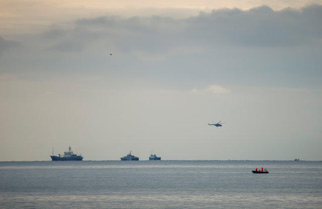 A helicopter flies next to ships near the crash site of a Russian military Tu-154 plane, which crashed into the Black Sea on its way to Syria on Sunday. (Photo: Reuters) MOSCOW – Russia has held a national day of mourning, a day after a Syria-bound military plane crashed into the Black Sea killing all 92 people on board, and expanded a search operation to try to recover passengers’ bodies and the jet’s black box.