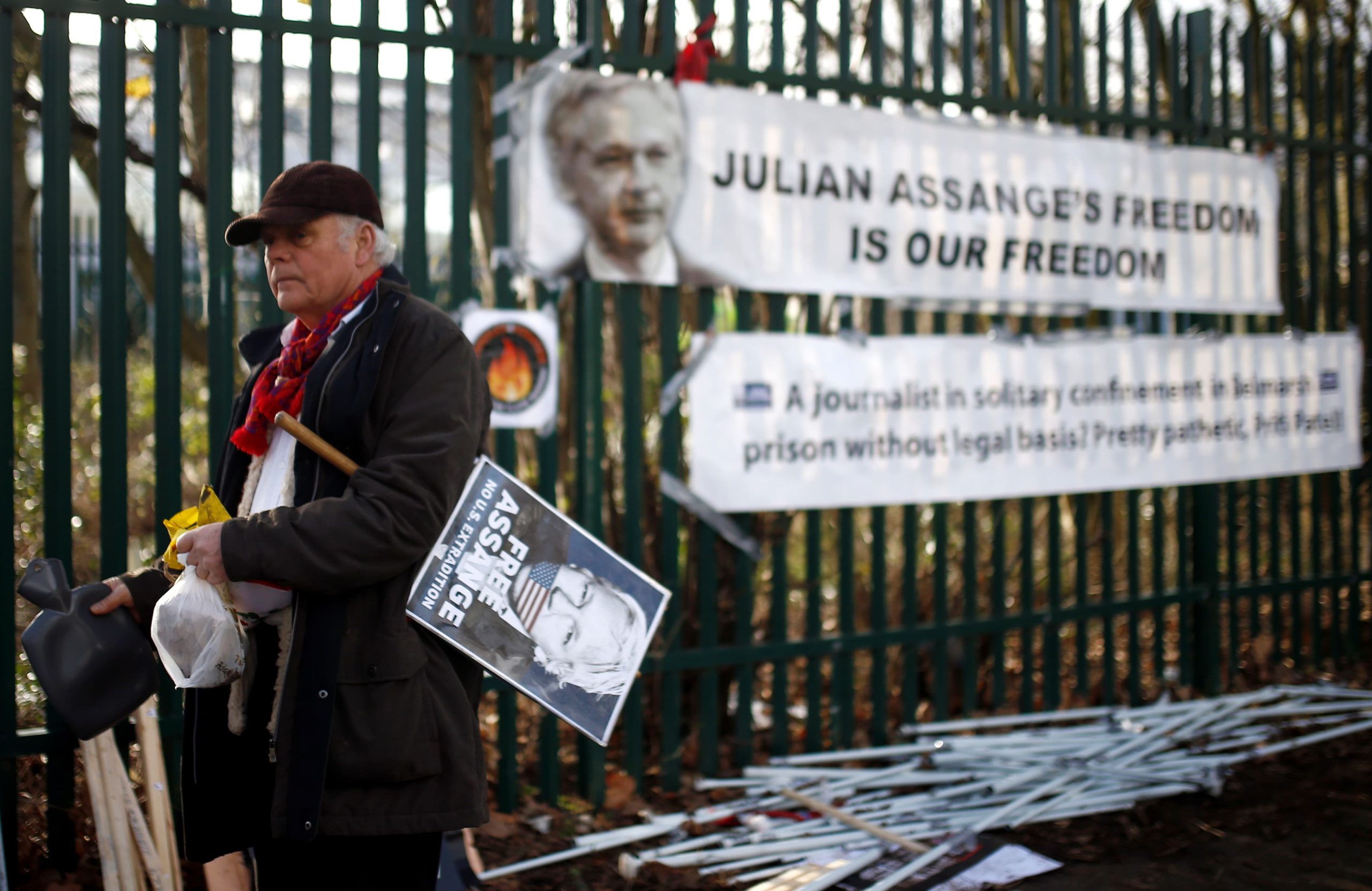 A supporter of WikiLeaks founder Julian Assange holds a sign outside Woolwich Crown Court, ahead of a hearing to decide whether Assange should be extradited to the United States, in London, Britain February 25, 2020. (Photo: Reuters)