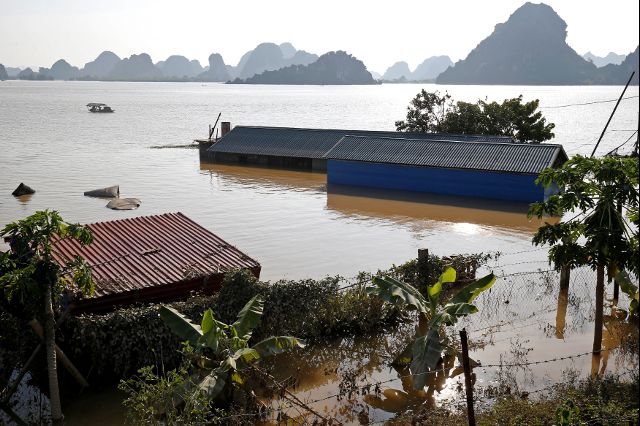 Submerged houses are seen at a flooded village after a heavy rainfall caused by a tropical depression in Ninh Binh province, Vietnam October 14, 2017. (Photo: Reuters) Vietnam has braced for typhoon Khanun after destructive floods battered the country’s north and centre last week, killing 72 people, the disaster prevention agency said.