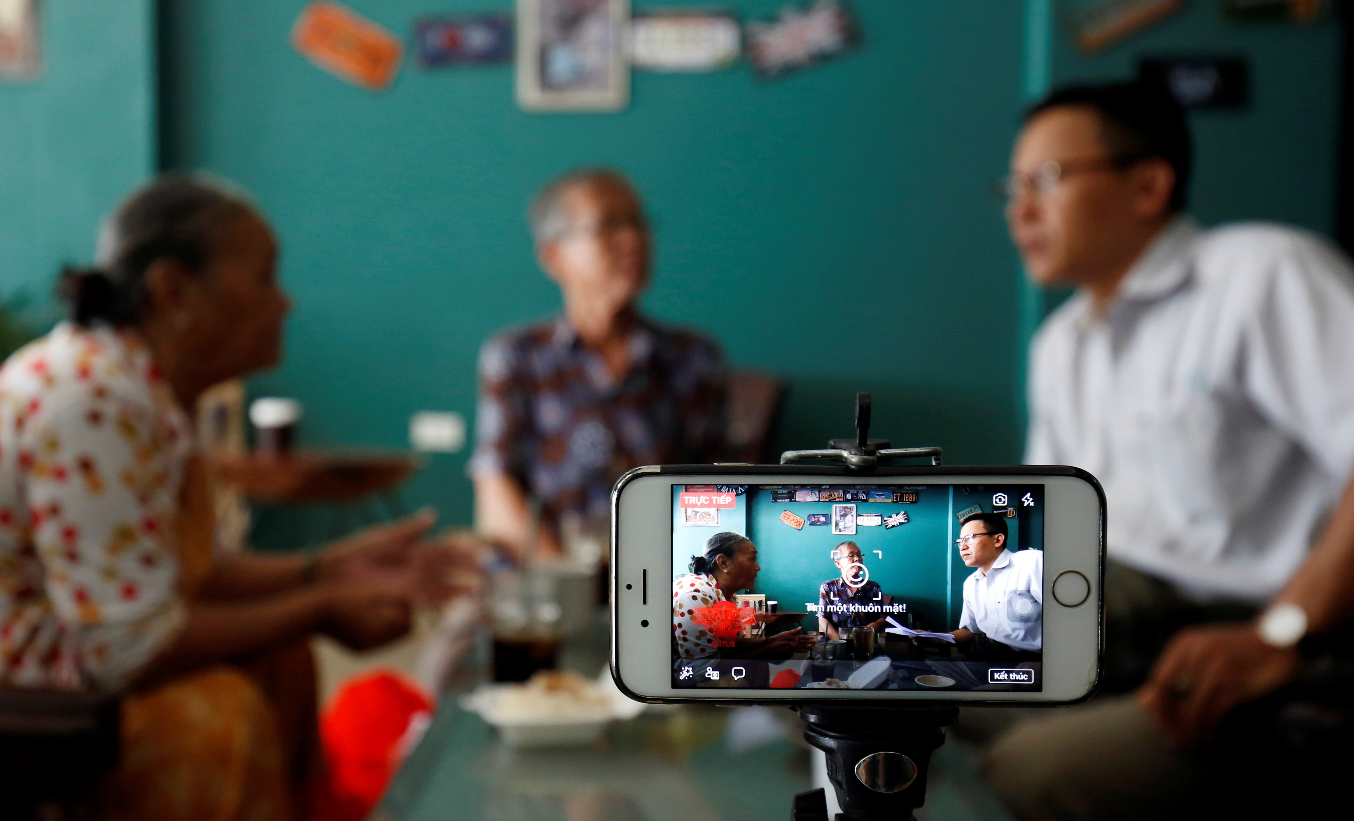 Rights activist Le Van Dung (R) live streams on Facebook in a coffee shop in Hanoi, Vietnam May 15, 2018. (Photo: Reuters) A struggle over internet laws in Vietnam is pitting a government keen on maintaining tight control against US technology companies trying to fight off onerous new rules – with the country’s online dissidents among the biggest losers.