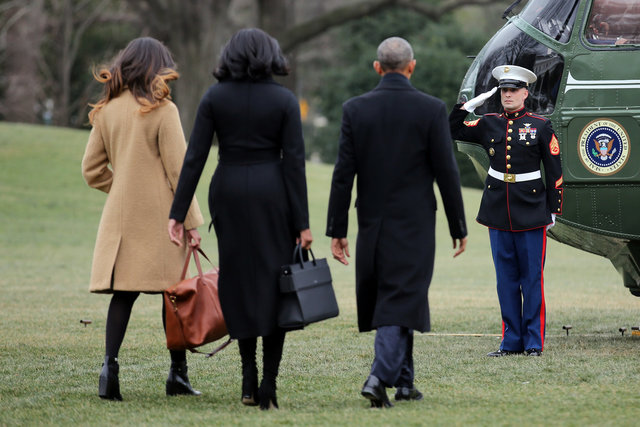 A marine stands by Marine One helicopter as US President Barack Obama, First Lady Michelle and their daughter Malia leave the White House for Chicago, Illinois, in Washington, US, January 10, 2017. (Photo: Reuters)